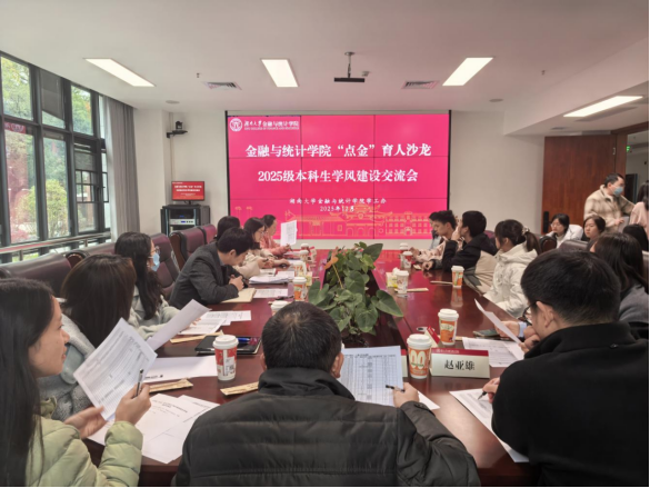 为进一步加强学院学生学业发展工作,营造追求卓越的学风,促进学生“学在金统”全面发展、卓越发展,12月16日下午,学院在224会议室召开2025级本科生学风建设交流会。学院党委副书记谭凤娥、教学委员会副主任马勇出席,新生班主任及本科2025级学生代表参加会议。