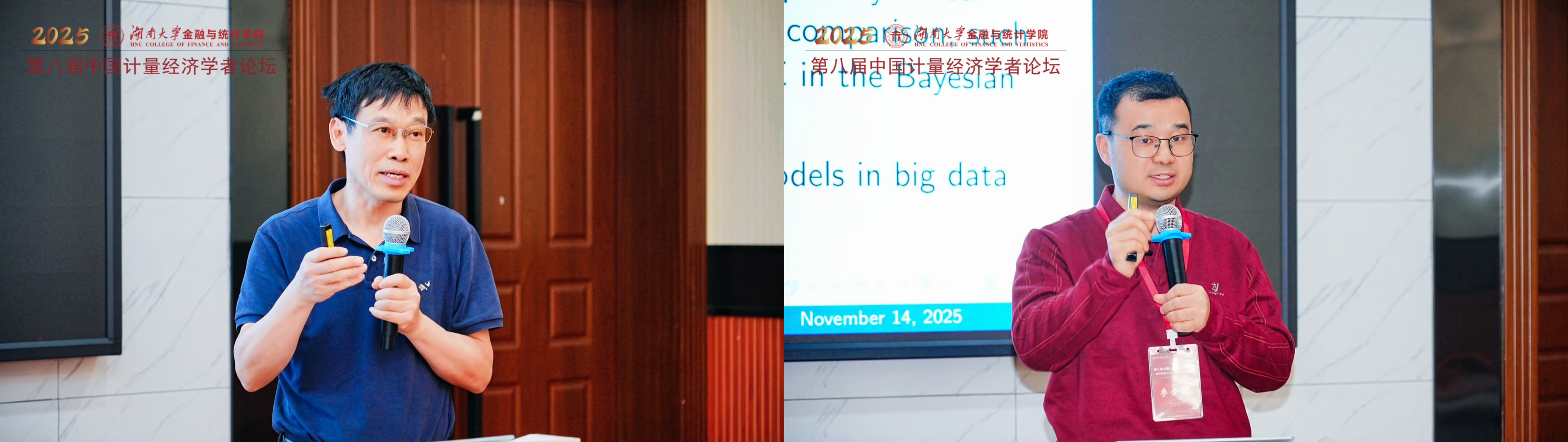 主旨报告六由武汉大学经济与管理学院刘成教授主持。厦门大学经济学院、王亚南经济研究院院长周颖刚教授的报告题为“Improving Mutual Fund Performance Evaluation Under the Conditional Stochastic Discount Factor Framework”。周颖刚教授指出传统基金绩效评估(如无条件alpha)存在缺陷,并构建了一个新的条件随机折现因子(SDF)框架。清华大学经济与管理学院苏良军教授作了题为“Large Dimensional Factor Models with Many Latent Groups”的报告。苏良军教授将高维因子模型拓展到包含潜在分组结构的情形,以解决因子载荷中广泛存在的异质性问题。首都经济贸易大学副校长李鲲鹏教授的报告题为“On the Endogeneity of Spatial Weights Matrix”。李鲲鹏教授探讨了空间计量模型中空间权重矩阵(W)的内生性问题,即当W(如基于贸易)本身也由模型中的变量决定时,传统估计将产生偏误。美国南加州大学经济系萧政教授带来了题为“Semi-Parametric Estimation of All Regression Coefficients for Sample Selection Panel Interactive Effects Models”的报告。萧政教授同时处理了面板数据中的样本选择偏误和交互固定效应(即未观测共同因子)两大难题。