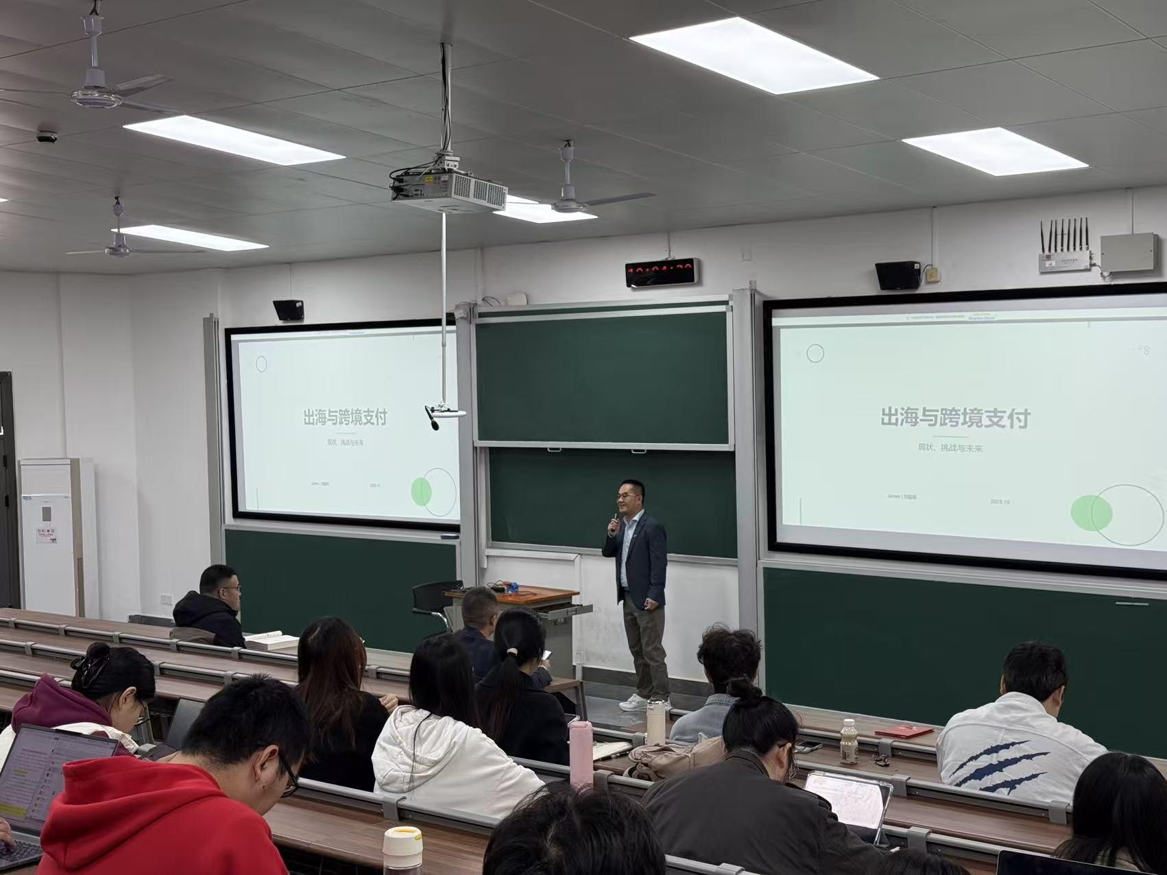 2025年11月4日上午,男同av “业界导师进课堂”系列讲座在财院校区梯教105举行。Oceanpayment联合创始人刘超峰走进金融硕士《投资学》课堂,作“出海与跨境支付:现状、挑战与未来”报告。Oceanpayment拥有全球金融业最高级别安全认证PCI DSS LEVEL 1,是中国唯一一家拥有全球数字支付技术和业务资质全牌照的FinTech公司,专注跨境⽀付技术服务与全球化布局,为中国企业出海提供安全合规的⽀付基础设施。本次授课由刘轶教授主持,一百余名研究生及部分教师现场聆听并参与交流。