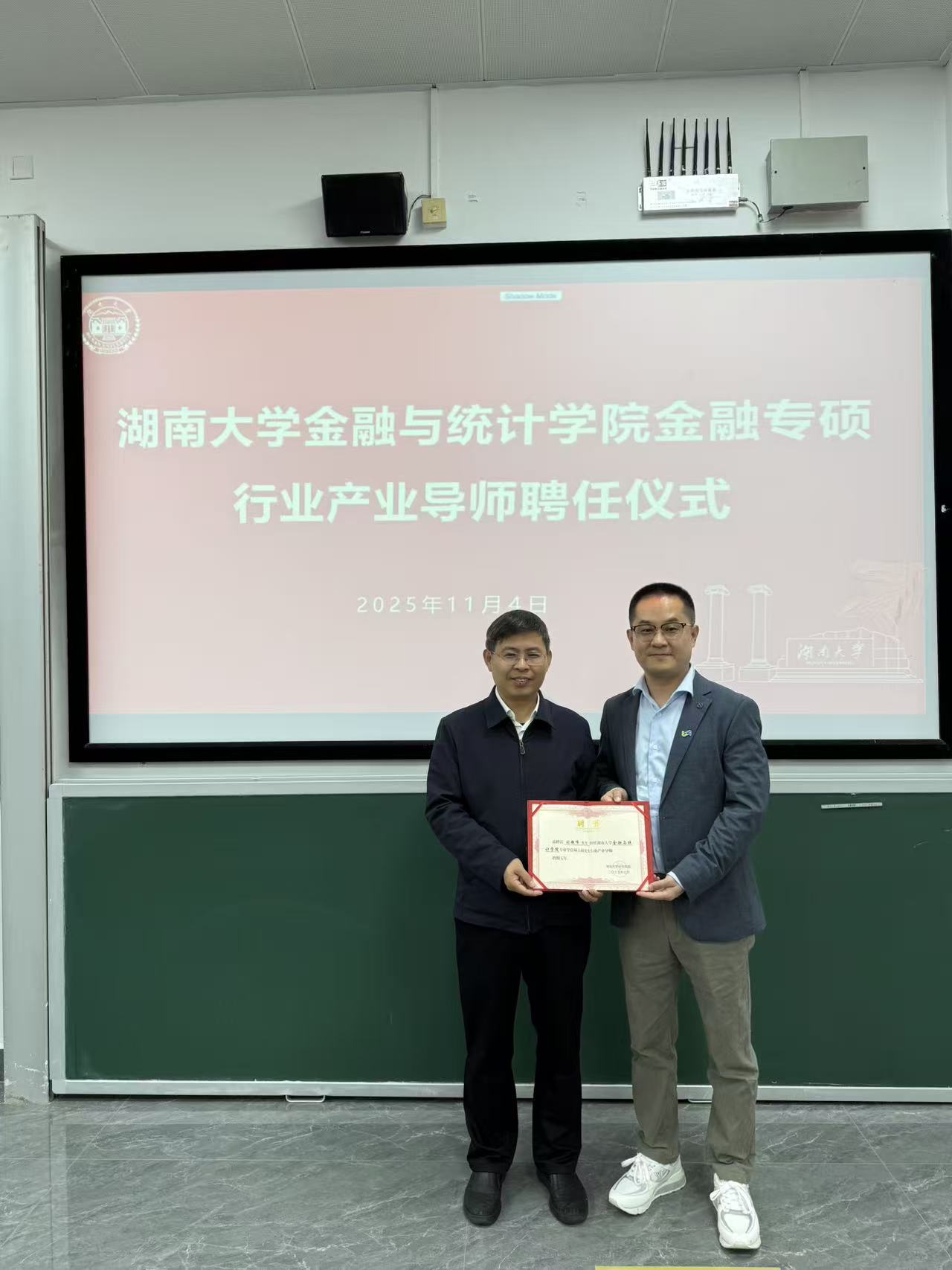 讲座开始前,王修华院长为刘超峰先生颁发了男同av 专业学位硕士研究生行业产业聘书,赠送校徽,并合影留念。王院长对刘超峰先生来校授课表示衷心感谢,他指出,“业界导师进课堂”是学院深化产教融合、推动研究生教学改革的重要举措。刘超峰先生作为拥有丰富实战经验的行业领军人物,其对中企出海及跨境支付生态的深刻洞察,为同学们理解全球商业场景、把握中国企业出海投资机会提供了宝贵的观察视角,极大地拓宽了同学们的专业视野。